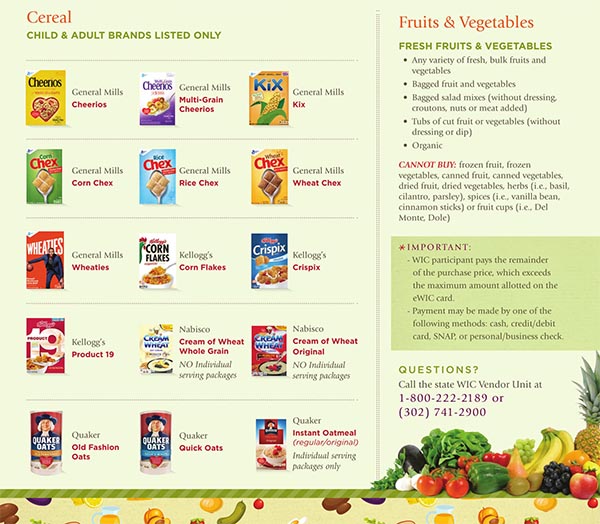 Below is a list of Delaware WIC approved foods. When you go shopping at a grocery store remember to bring your WIC ID folder along with your checks/vouchers or your eWIC card, depending on what the state gives you. You also should bring the Delaware approved WIC food list brochure which you can view below or download here. This will help you determine what items you can purchase. If you do not see the food item you are looking to purchase with your Delaware WIC benefits or have additional questions or issues, then we suggest contacting your local WIC clinic.