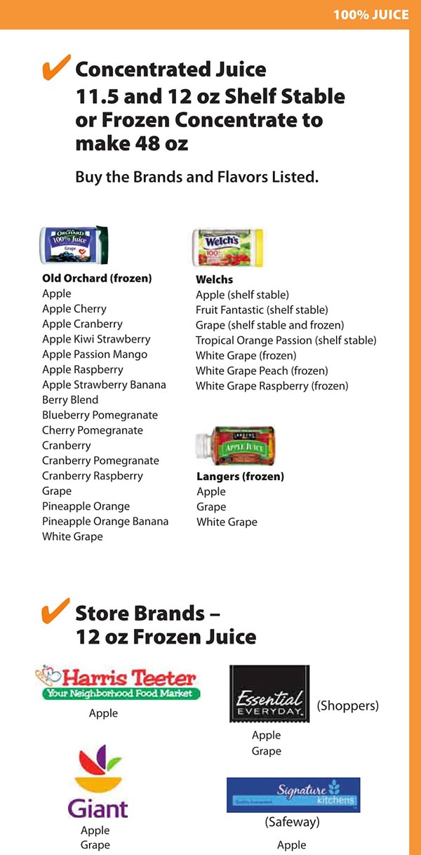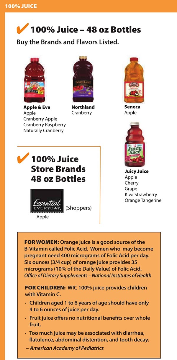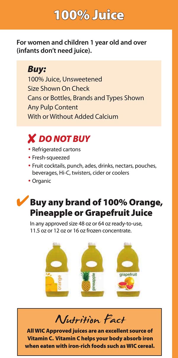 Below is a list of District Of Columbia WIC approved foods. When you go shopping at a grocery store remember to bring your WIC ID folder along with your checks/vouchers or your eWIC card, depending on what the state gives you. You also should bring the District Of Columbia approved WIC food list brochure which you can view below or download here. This will help you determine what items you can purchase. If you do not see the food item you are looking to purchase with your District Of Columbia WIC benefits or have additional questions or issues, then we suggest contacting your local WIC clinic.