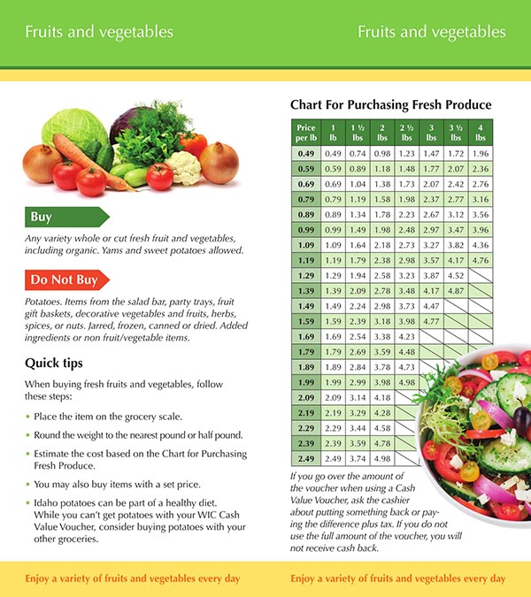 Below is a list of Idaho WIC approved foods. When you go shopping at a grocery store remember to bring your WIC ID folder along with your checks/vouchers or your eWIC card, depending on what the state gives you. You also should bring the Idaho approved WIC food list brochure which you can view below or download here. This will help you determine what items you can purchase. If you do not see the food item you are looking to purchase with your Idaho WIC benefits or have additional questions or issues, then we suggest contacting your local WIC clinic.