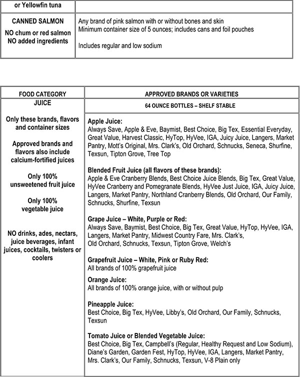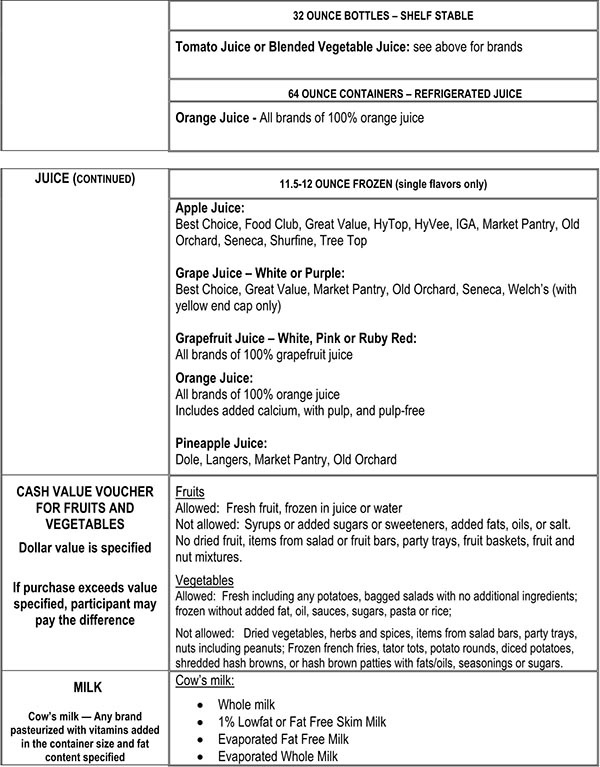 Below is a list of Iowa WIC approved foods. When you go shopping at a grocery store remember to bring your WIC ID folder along with your checks/vouchers or your eWIC card, depending on what the state gives you. You also should bring the Iowa approved WIC food list brochure which you can view below or download here. This will help you determine what items you can purchase. If you do not see the food item you are looking to purchase with your Iowa WIC benefits or have additional questions or issues, then we suggest contacting your local WIC clinic.