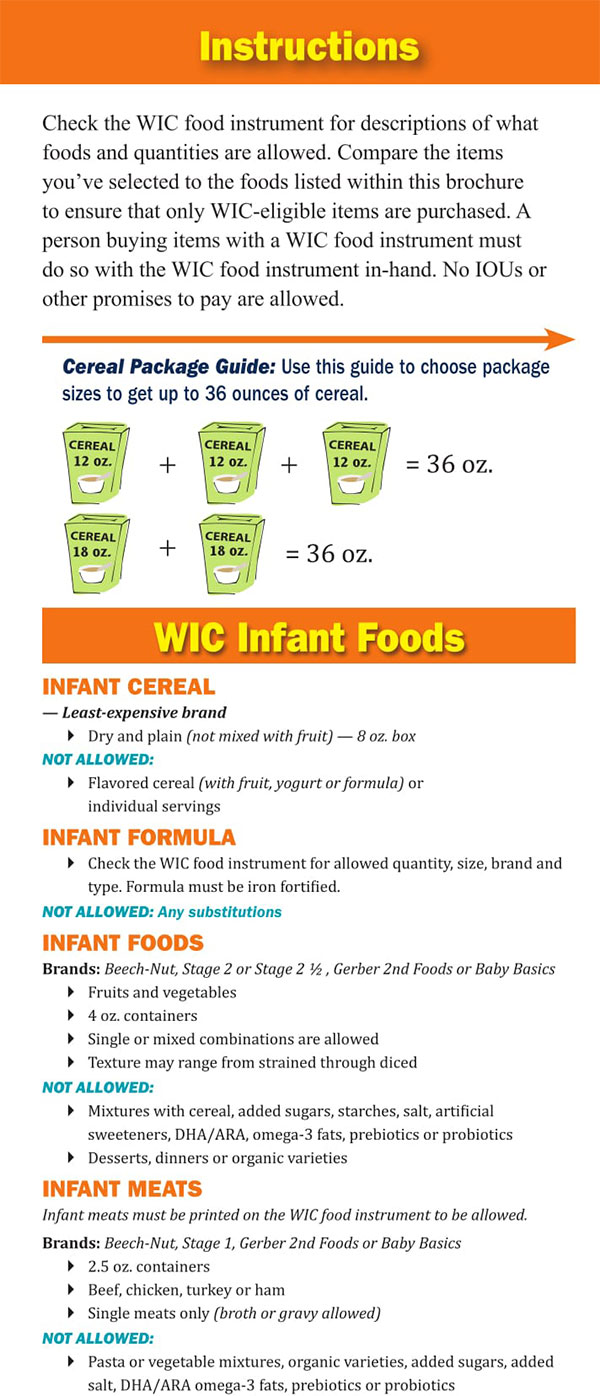 Below is a list of Louisiana WIC approved foods. When you go shopping at a grocery store remember to bring your WIC ID folder along with your checks/vouchers or your eWIC card, depending on what the state gives you. You also should bring the Louisiana approved WIC food list brochure which you can view below or download here. This will help you determine what items you can purchase. If you do not see the food item you are looking to purchase with your Louisiana WIC benefits or have additional questions or issues, then we suggest contacting your local WIC clinic.