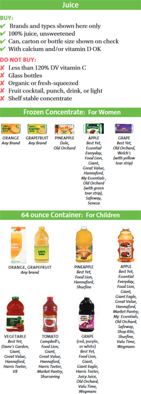 Below is a list of Maryland WIC approved foods. When you go shopping at a grocery store remember to bring your WIC ID folder along with your checks/vouchers or your eWIC card, depending on what the state gives you. You also should bring the Maryland approved WIC food list brochure which you can view below or download here. This will help you determine what items you can purchase. If you do not see the food item you are looking to purchase with your Maryland WIC benefits or have additional questions or issues, then we suggest contacting your local WIC clinic.