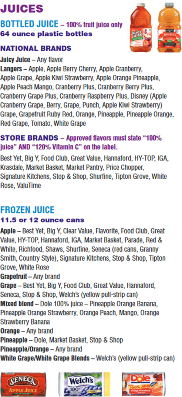 Below is a list of Massachusetts WIC approved foods. When you go shopping at a grocery store remember to bring your WIC ID folder along with your checks/vouchers or your eWIC card, depending on what the state gives you. You also should bring the Massachusetts approved WIC food list brochure which you can view below or download here. This will help you determine what items you can purchase. If you do not see the food item you are looking to purchase with your Massachusetts WIC benefits or have additional questions or issues, then we suggest contacting your local WIC clinic.