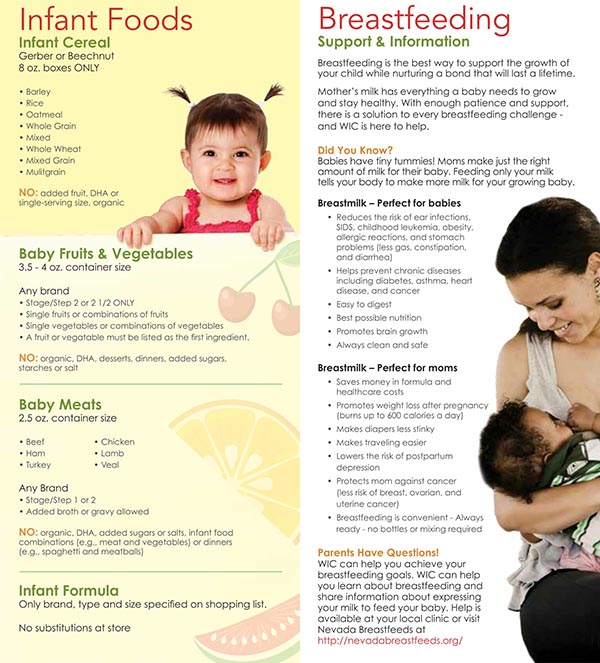 Below is a list of Nevada WIC approved foods. When you go shopping at a grocery store remember to bring your WIC ID folder along with your checks/vouchers or your eWIC card, depending on what the state gives you. You also should bring the Nevada approved WIC food list brochure which you can view below or download here. This will help you determine what items you can purchase. If you do not see the food item you are looking to purchase with your Nevada WIC benefits or have additional questions or issues, then we suggest contacting your local WIC clinic.