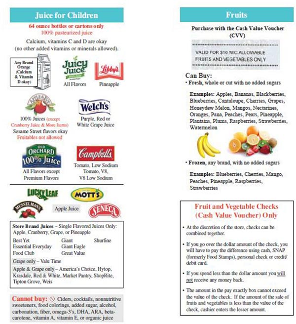 Below is a list of Pennsylvania WIC approved foods. When you go shopping at a grocery store remember to bring your WIC ID folder along with your checks/vouchers or your eWIC card, depending on what the state gives you. You also should bring the Pennsylvania approved WIC food list brochure which you can view below or download here. This will help you determine what items you can purchase. If you do not see the food item you are looking to purchase with your Pennsylvania WIC benefits or have additional questions or issues, then we suggest contacting your local WIC clinic.