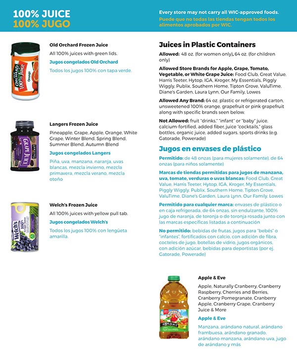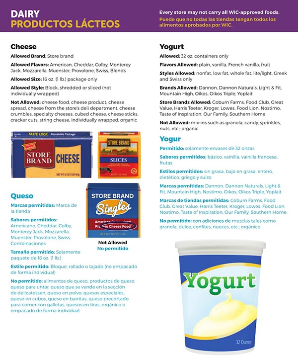 Below is a list of South Carolina WIC approved foods. When you go shopping at a grocery store remember to bring your WIC ID folder along with your checks/vouchers or your eWIC card, depending on what the state gives you. You also should bring the South Carolina approved WIC food list brochure which you can view below or download here. This will help you determine what items you can purchase. If you do not see the food item you are looking to purchase with your South Carolina WIC benefits or have additional questions or issues, then we suggest contacting your local WIC clinic.