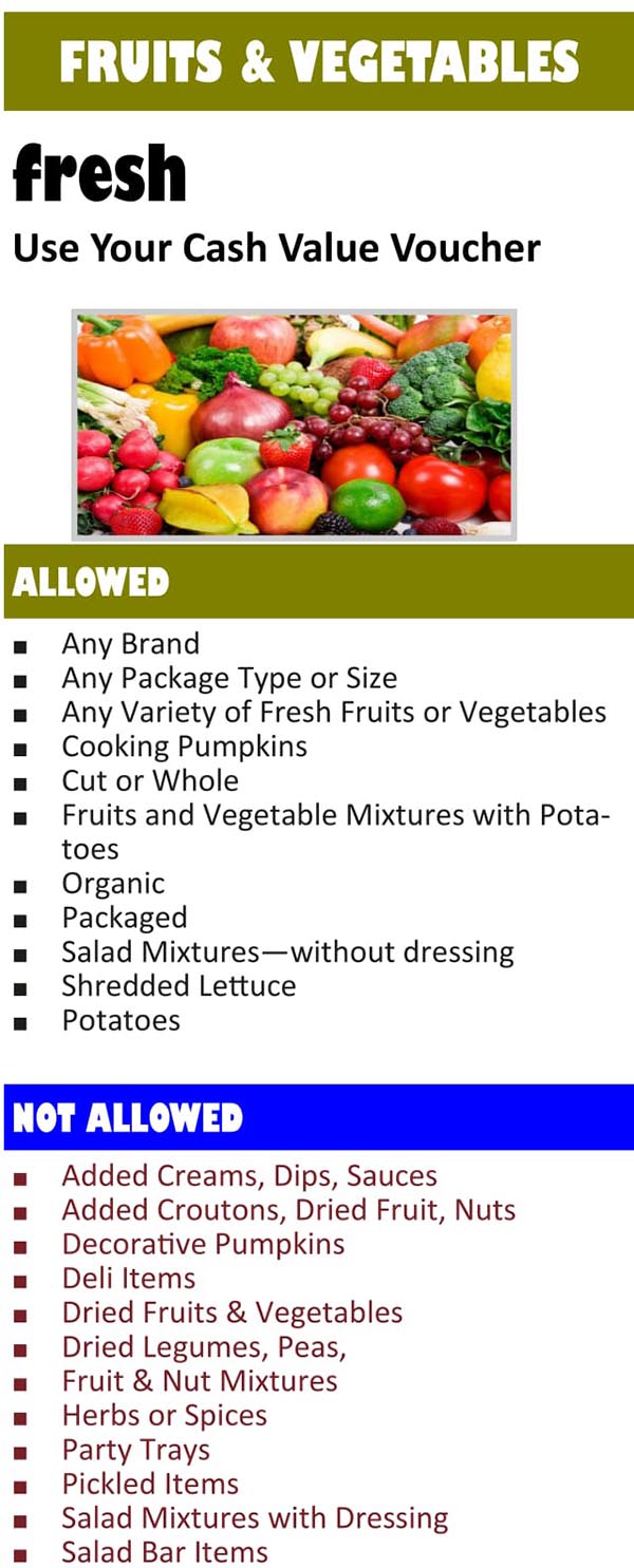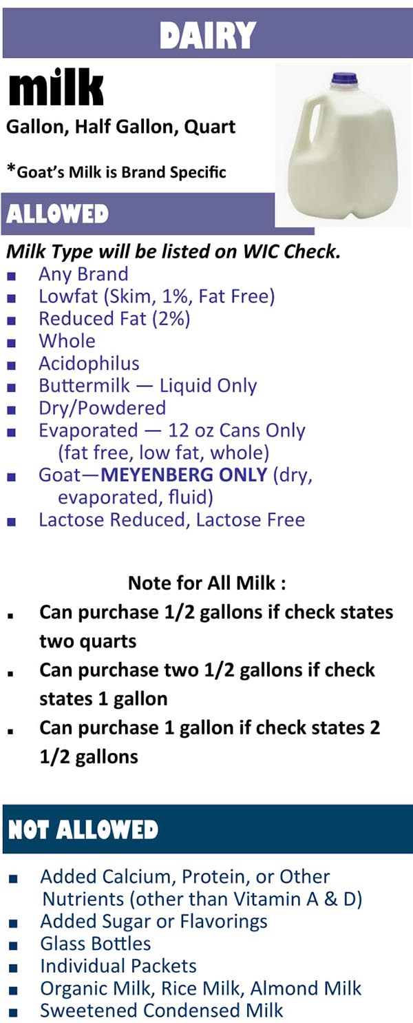 Below is a list of South Dakota WIC approved foods. When you go shopping at a grocery store remember to bring your WIC ID folder along with your checks/vouchers or your eWIC card, depending on what the state gives you. You also should bring the South Dakota approved WIC food list brochure which you can view below or download here. This will help you determine what items you can purchase. If you do not see the food item you are looking to purchase with your South Dakota WIC benefits or have additional questions or issues, then we suggest contacting your local WIC clinic.