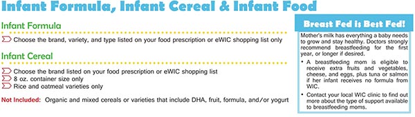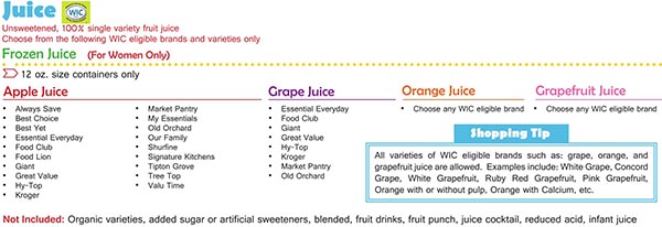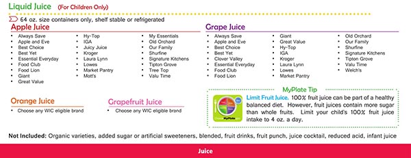 Below is a list of Virginia WIC approved foods. When you go shopping at a grocery store remember to bring your WIC ID folder along with your checks/vouchers or your eWIC card, depending on what the state gives you. You also should bring the Virginia approved WIC food list brochure which you can view below or download here. This will help you determine what items you can purchase. If you do not see the food item you are looking to purchase with your Virginia WIC benefits or have additional questions or issues, then we suggest contacting your local WIC clinic.